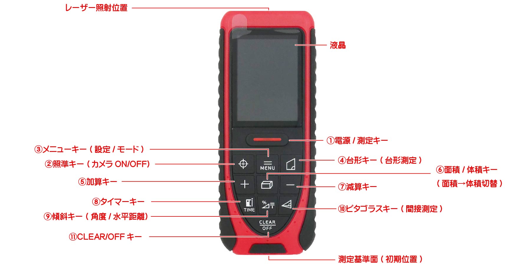 測定時のみレーザーを照射し、通常の使用環境では安全にお使いいただけますが、人や動物の目に直接照射しないようご注意ください。
