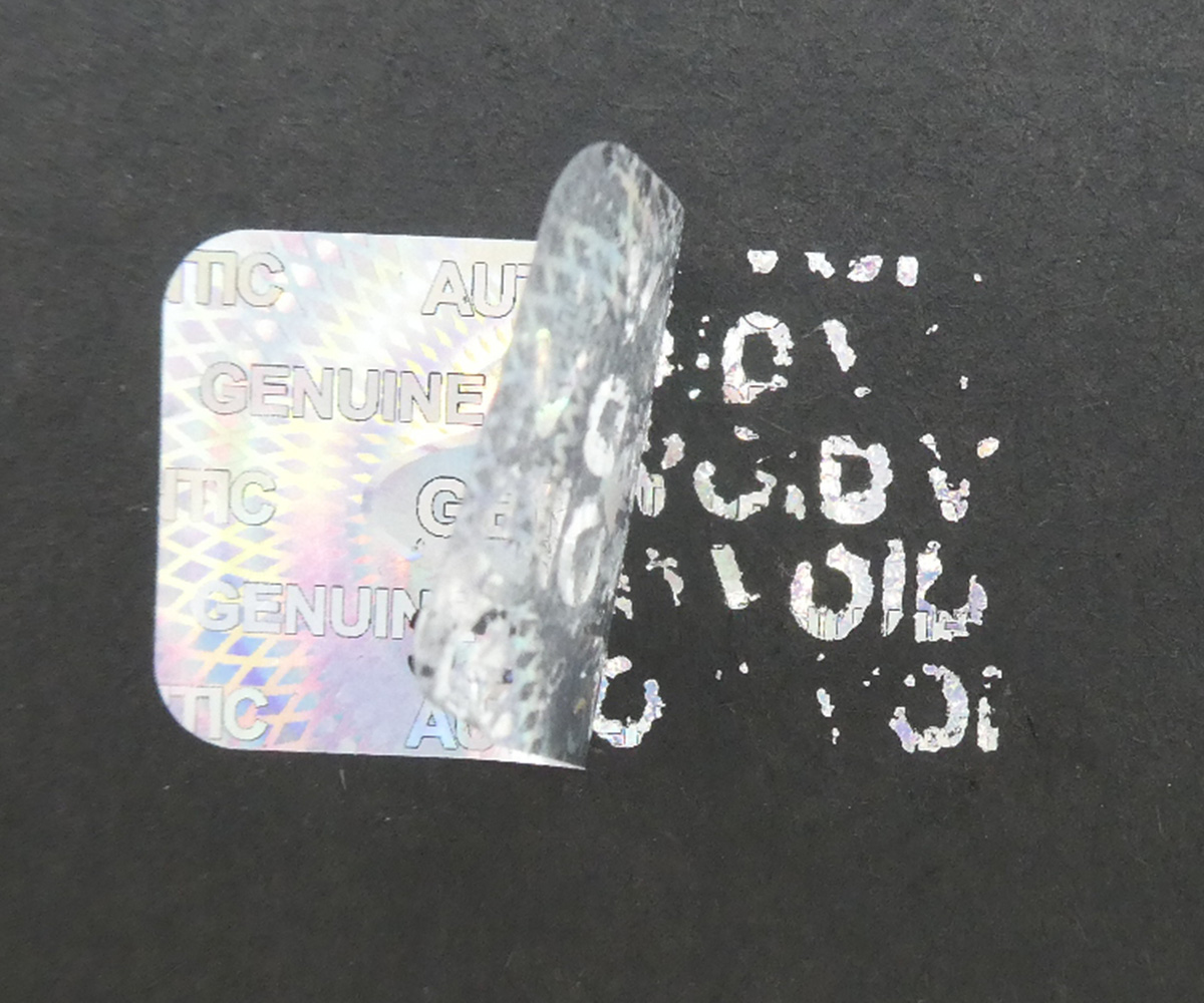 ホログラムのように光を反射する素材を使用しており、各シールには重複のないシリアルナンバーが印字されています。
