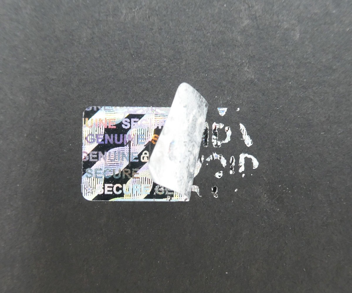 一度張り付けたシールを剥がすと、貼られていた場所に「VOID」の文字が残るセキュリティラベルです。