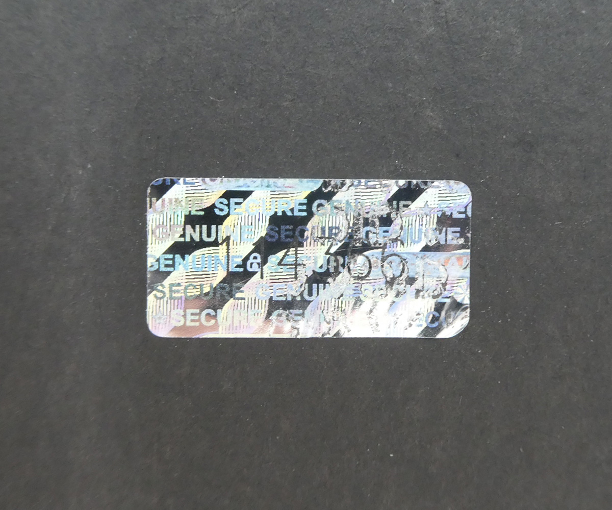 ホログラムのように光を反射する素材を使用しており、各シールには重複のないシリアルナンバーが印字されています。